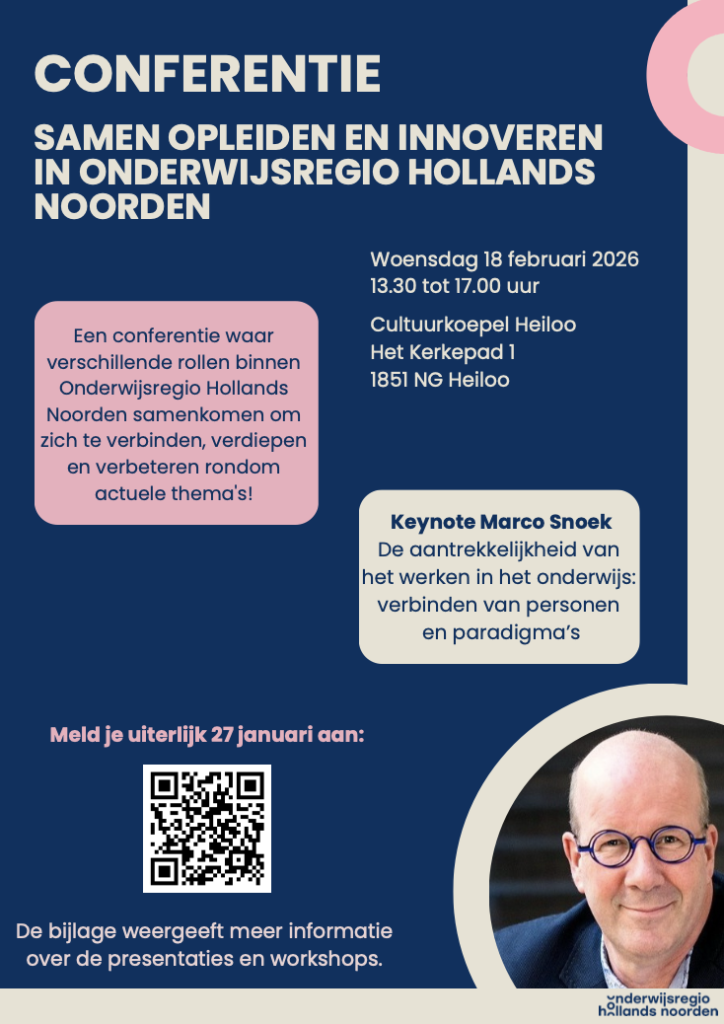 Een conferentie waar verschillende rollen binnen Onderwijsregio Hollands Noorden samenkomen om zich te verbinden, verdiepen en verbeteren rondom actuele thema’s!