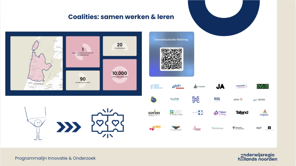• Bij dit project werken de scholen zelf met hun eigen kennis en ervaring uit onze regio, zonder commerciële partijen; samenwerken met onze kennisinstituten, lectoraten en practoraten/auctoraten wordt juist gestimuleerd om samen nog sterker en beter onderwijs te maken